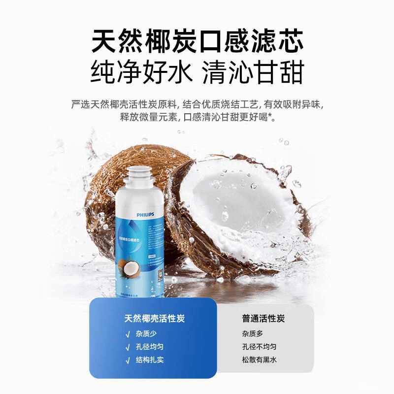 3️⃣口感纯净,天然甘甜:严选优质天然椰壳活性炭,99.9%UV杀菌率,保证水质纯净,喝出清甜口感,让每一口水都像喝椰汁一样甘甜。