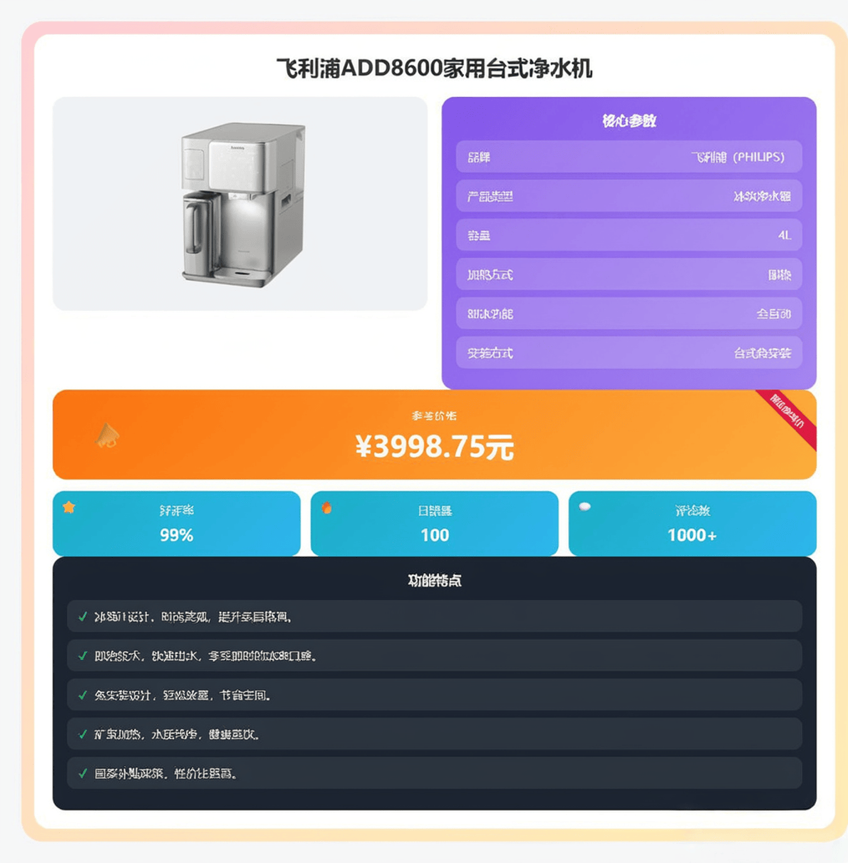 选择它,意味着你希望一劳永逸地解决厨房烹饪和饮用的净水需求,不追求即时加热等功能,更看重净化的核心效果和性价比。它是回答飞利浦净水机哪款好?时,最务实、最基础的选择。