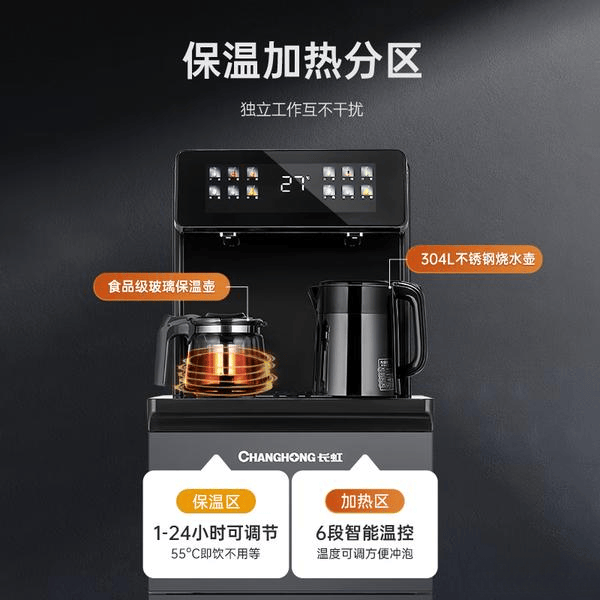 推荐理由:长虹CH-T102茶吧机的智能语音控制功能让操作变得更直观,轻声喊一声便能完成加水或换温度的操作,省去弯腰的麻烦。它配备了12档可调温功能,能够很好的满足不同饮品的温度需求,无论是冲泡绿茶还是热奶,温度调节得恰到好处,喝起来自然更舒心。